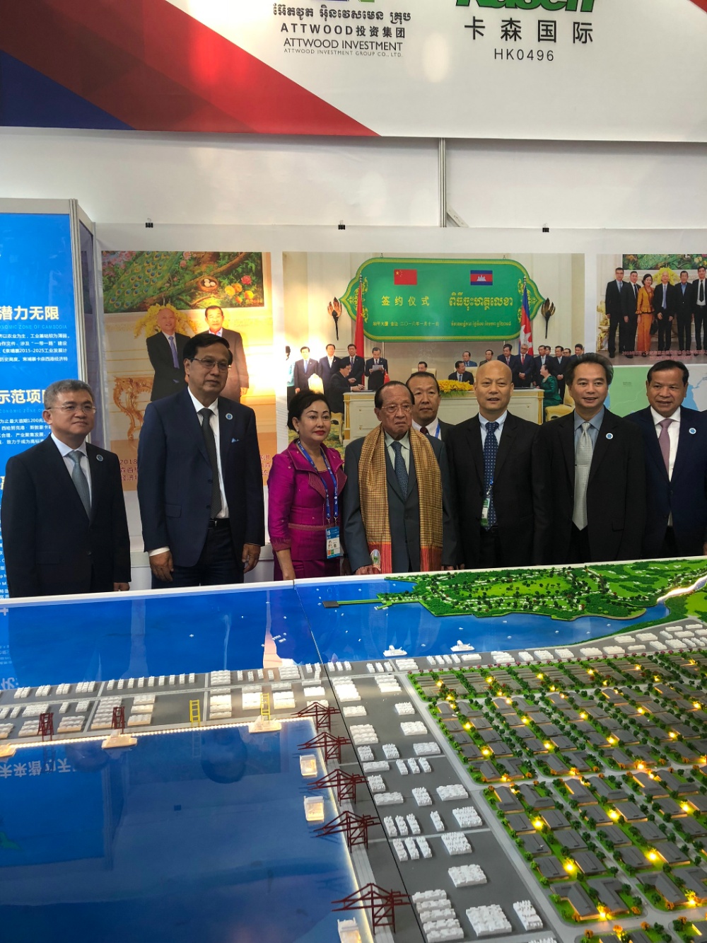 柬埔寨王國(guó)副首相兼外交部長(zhǎng)(左四)蒞臨東盟博覽會(huì)特區(qū)展位