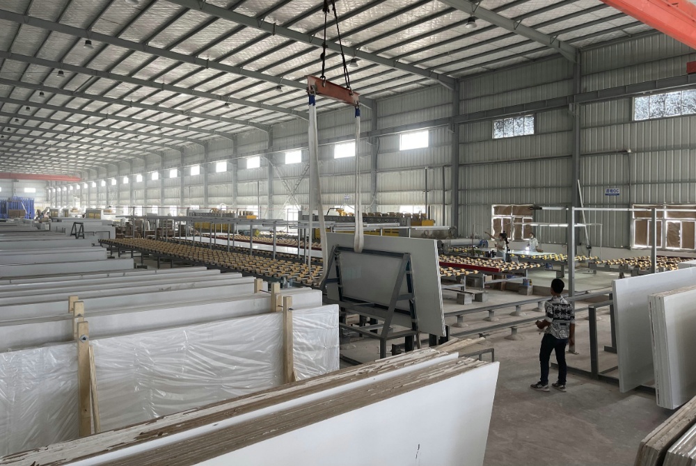 柬埔寨高金石有限公司是由福建磐珉新材有限公司于2019年11月在特區(qū)設(shè)立,主要生產(chǎn)可應(yīng)用于住宅和商業(yè)室內(nèi)裝飾的環(huán)保石英石板材產(chǎn)品,包括廚房臺(tái)面、浴室臺(tái)面、辦公桌、墻板等,項(xiàng)目分二期建設(shè),目前一期投資1000萬(wàn)美元,建筑面積24000平方米,員工230人,年出口1800多萬(wàn)美元;二期計(jì)劃擴(kuò)建用地28000平方米。