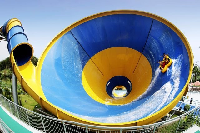 · 超級大喇叭,受歡迎的大型水上設備之一。坐在特別設計的四葉草型浮圈里面滑行,從16米高空滑行到直徑約21米的巨大的喇叭型圓錐體里面,像是被龍卷風吸進去的感覺。