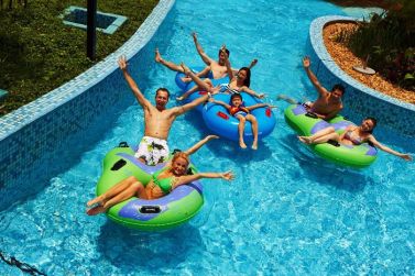 · 漂流河,長度約700米,你只需要躺在特別設計的浮圈上沿河漂流放松自己就行,非常悠閑的一項體驗。