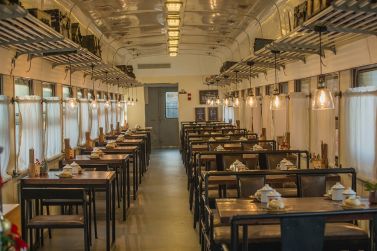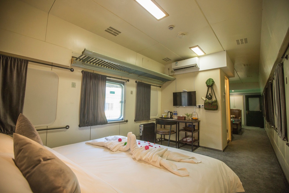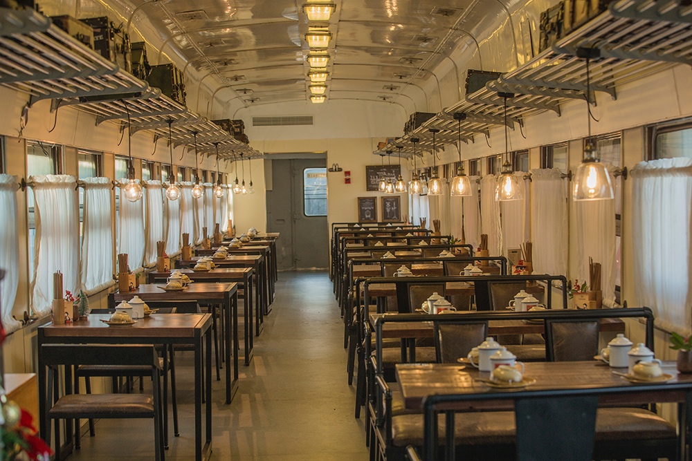 東方紅火車主題酒店由3列27節(jié)綠皮火車車廂組成,來(lái)自長(zhǎng)春、沈陽(yáng)等北方城市的綠皮火車經(jīng)過著名設(shè)計(jì)師的改造已經(jīng)成了國(guó)內(nèi)為數(shù)不多的火車主題酒店,一共73間火車客房和1個(gè)火車餐廳。酒店以橫鋼50年代金千鐵路舊址作為切入點(diǎn),利用火車枕木鋪設(shè)人行游步道,結(jié)合溫泉,形成了真正的VIP溫泉客房。走進(jìn)綠皮火車,你會(huì)發(fā)現(xiàn)原先的車廂已經(jīng)被很好地設(shè)計(jì)成了宜居的客房,書桌、衛(wèi)生間、電視、暖氣一應(yīng)俱全,還能在墻上看到年代感的背包/水壺/帽子的裝飾。