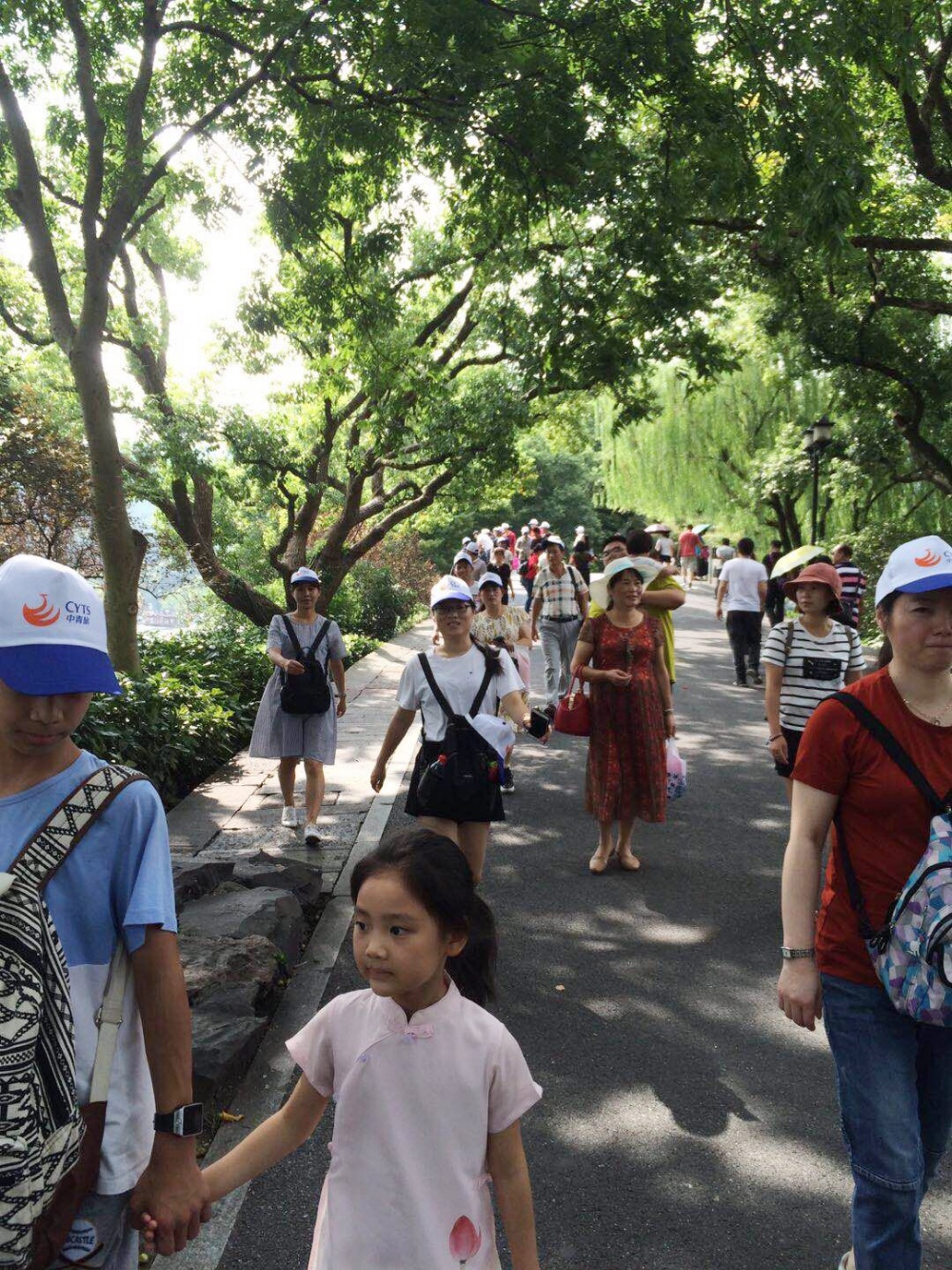 一下車(chē),大家漫步來(lái)到了西湖邊,走在蘇堤上,紛紛感慨:西湖不愧是人間天堂??!整個(gè)一座湖就像一面大鏡子,倒映著湖邊的美景,照出了大家歡樂(lè)的心聲。湖堤兩岸長(zhǎng)滿了柳樹(shù),柳樹(shù)依舊像春天那樣充滿著蓬勃的生命力,枝條長(zhǎng)得已經(jīng)垂到了湖面,宛如一個(gè)美麗的少女正在清洗她那長(zhǎng)長(zhǎng)的黑發(fā),微風(fēng)乍起,柳枝擺動(dòng),仿佛是風(fēng)在彈奏悠揚(yáng)的豎琴,也仿佛在歡迎我們恒森一家人的到來(lái)。在這如此美的景色下,有的員工拿出手機(jī)拍照留念,有的員工結(jié)伴倚在湖邊的長(zhǎng)凳上,相互聊天拉家常。