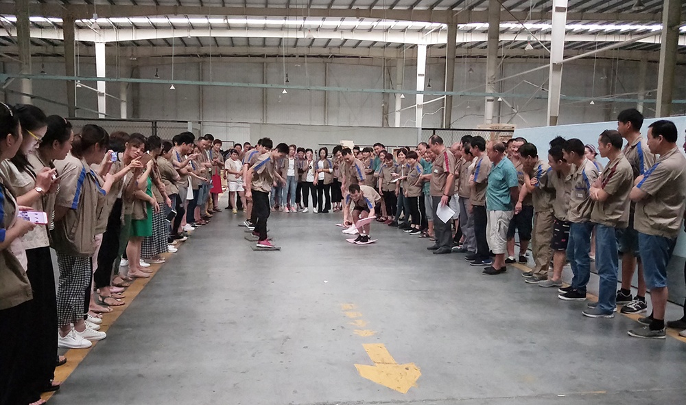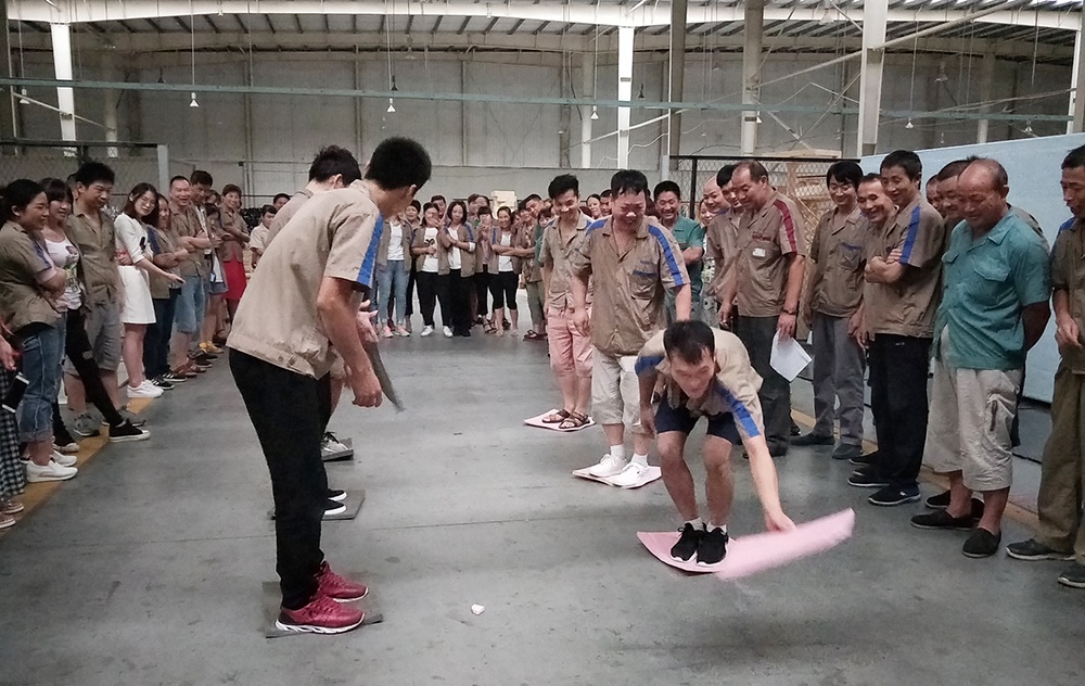 隨著一聲“比賽開始”的口令,大家熱情高漲,隊(duì)員們齊心協(xié)力,奮力拼搏,有些隊(duì)剛開始有點(diǎn)緊張,所走路線成彎曲狀,后來,在大家從旁提醒,順利到達(dá)終點(diǎn)。有些隊(duì)吸取經(jīng)驗(yàn),通過簡單的交流和溝通戰(zhàn)略技巧,比較順利。相比而言,后面的組明顯比前面的組速度快。在整個(gè)比賽過程中,里料車間團(tuán)隊(duì)協(xié)作的能力和靈活的戰(zhàn)術(shù)配合比較好,本著“友誼第一、比賽第二”的精神,經(jīng)過激烈角逐,里料車間以2分25秒完成了60米“搭橋過河”獲比賽第一名,包裝車間獲得第二名,技術(shù)部獲得第三名。