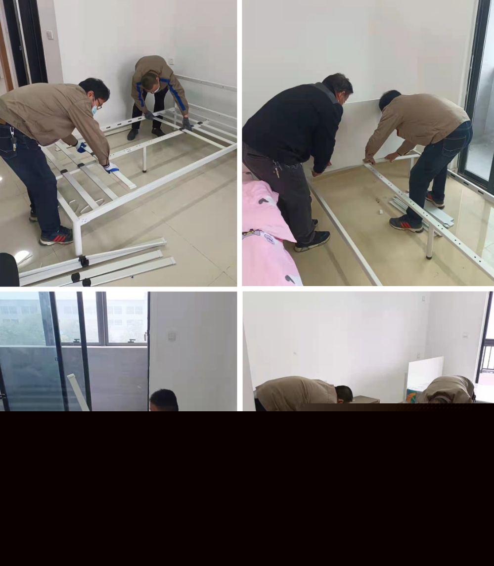 9點多,志愿者們到達第一個增援點,立即投入“戰(zhàn)斗”,先安裝兩個樓層的床位,之后立馬又調至第二個增援點,那里有十二個樓層,每層29個房間,志愿者們自己搬運床架組件,自己組裝,跑上跑下,爭分奪秒,為的是趕在隔離點人員到來之前全部安裝完畢。大家一刻不停,與時間賽跑,使勁趕進度。期間還安裝房間鋼架椅子,清理房間里的垃圾。