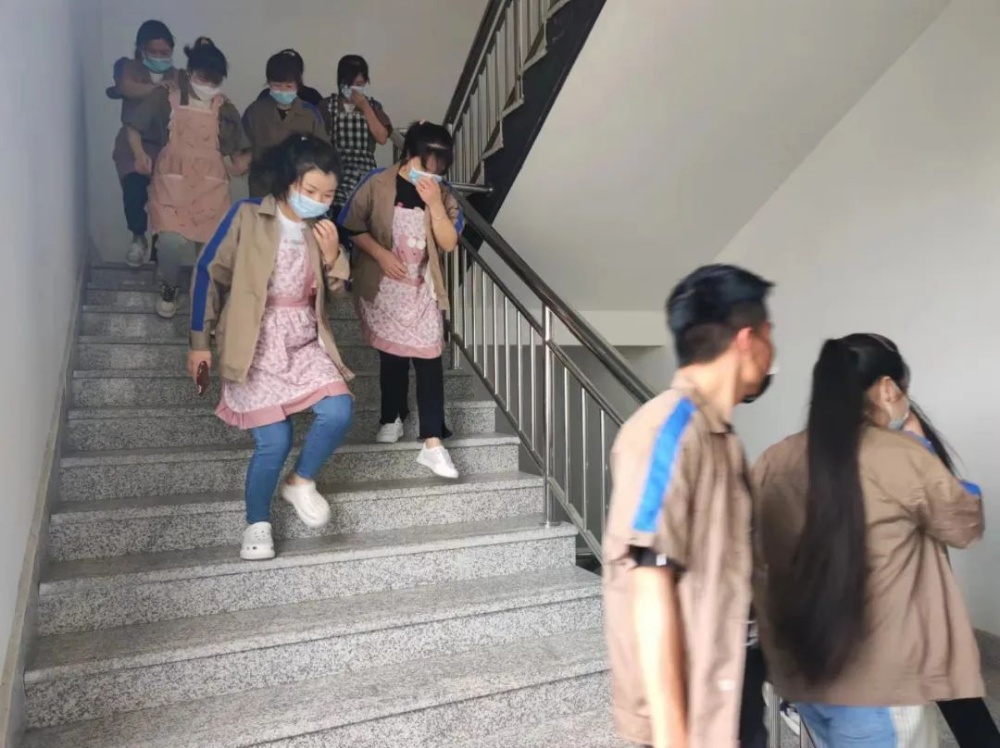 公司領(lǐng)導(dǎo)在得知火場情況后(火警鈴響起),立即作出全部疏散命令,各車間主任、班組長有序組織人員通過疏散逃生通道撤離到“緊急集合點”并及時清點人員。
