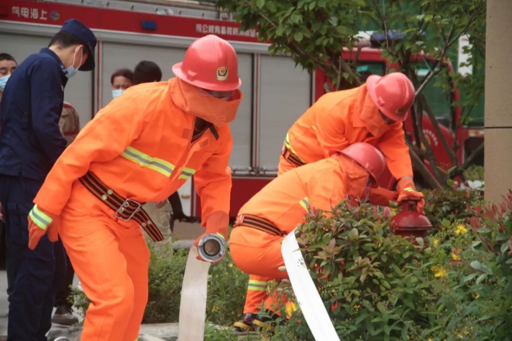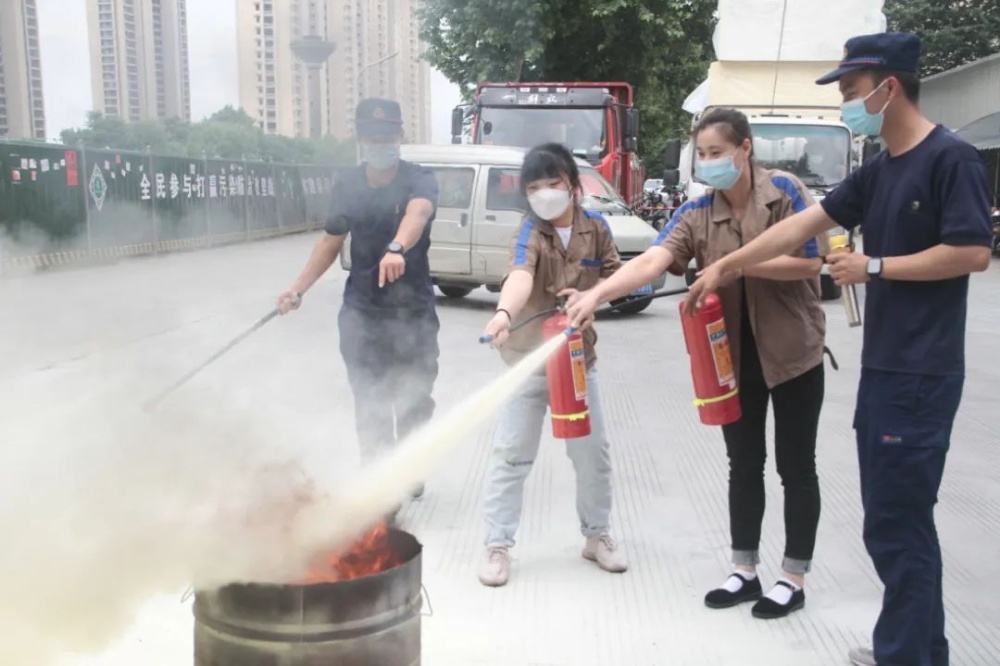 任何人員發(fā)現(xiàn)火災(zāi)后應(yīng)立刻呼叫附近員工參與滅火救援,在一分鐘內(nèi)組成第一滅火力量。在鎮(zhèn)消防隊的指導(dǎo)下,通過演練干粉滅火器滅火、推車滅火器、水帶連接消火栓出水演練,使員工掌握發(fā)生火災(zāi)后正確的滅火力量調(diào)配和撲救步驟。