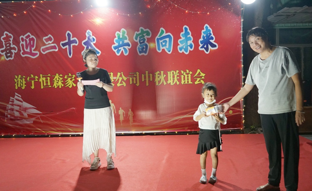 9月7日晚,一場別開生面的“喜迎二十大·共富向未來——海寧恒森家具有限公司中秋聯(lián)誼會”在路仲廠區(qū)的場地上完美呈現(xiàn)。沒有璀璨的燈光,沒有高檔的音響,亦沒有華麗的服裝和專業(yè)的演出技能,公司近200名員工簡樸地歡聚在一起,用歌舞表演等形式迎接壬寅中秋和二十大的到來;用圓桌圓盤等寓意中秋團圓,十全十美。