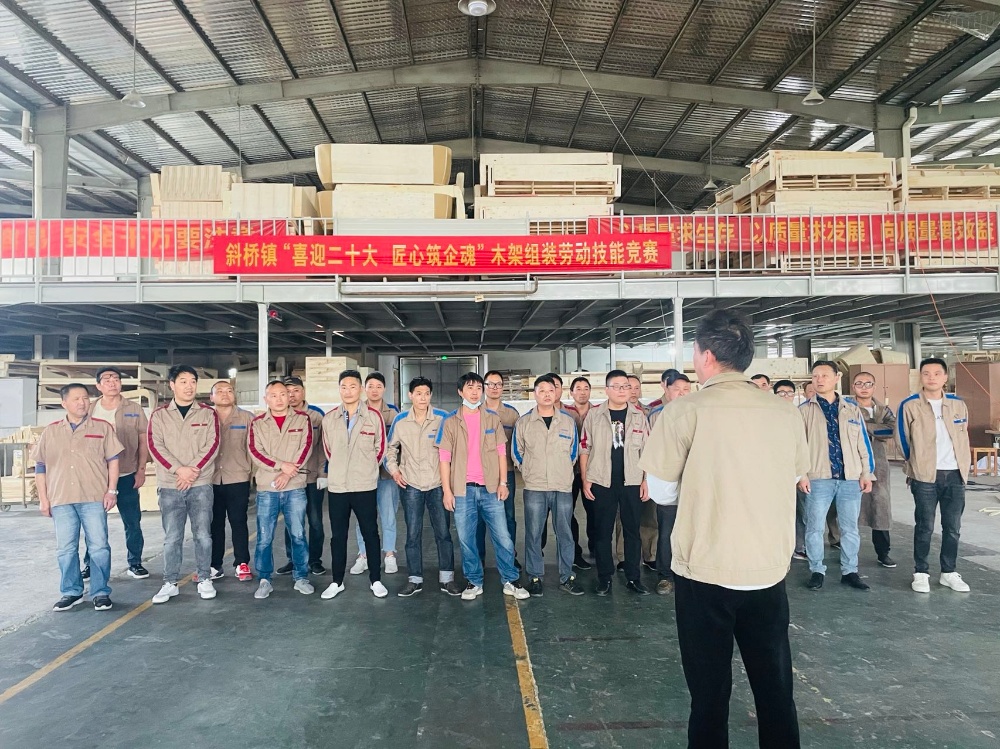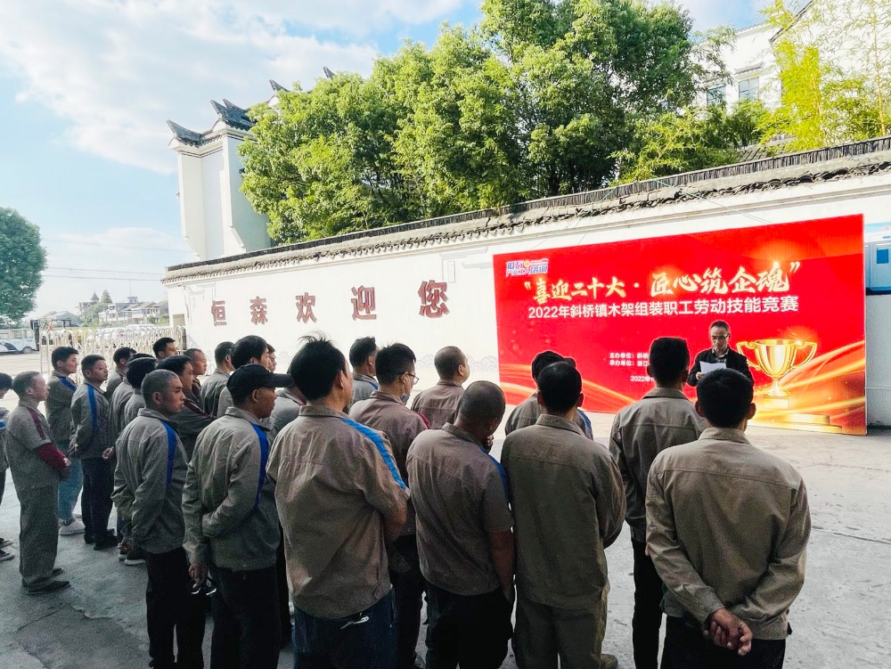 為提升職工勞動技能水平,形成創(chuàng)先爭優(yōu)、比學(xué)趕超的競爭氛圍,一場以“喜迎二十大 匠心筑企魂”為主題的2022年斜橋鎮(zhèn)木架組裝勞動技能競賽在恒森公司組裝車間拉開戰(zhàn)幕,來自組裝一車間、二車間和打樣車間的26名技能型員工報(bào)名參賽。