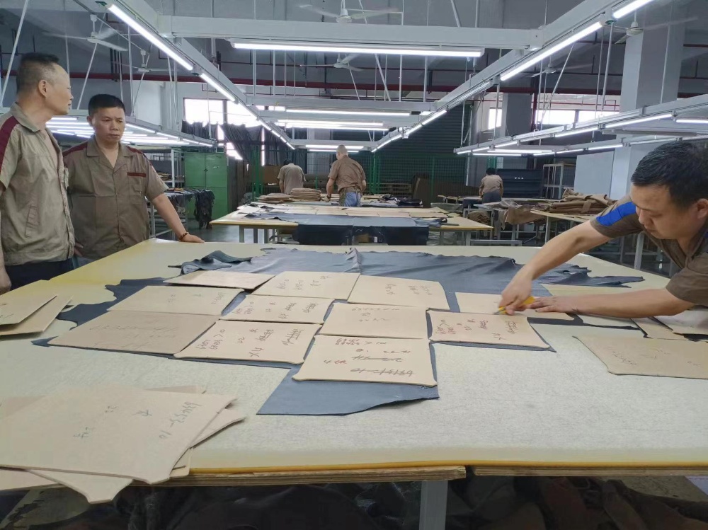 6月13日下午1時裁剪車間也進(jìn)行了激烈比拼,8名一線員工較量63422-10皮1套的裁剪。比賽中選手把皮平攤在桌子上,認(rèn)真地把皮疵點圈出,然后把樣板放皮上,嚴(yán)格按質(zhì)量要求認(rèn)真裁皮。經(jīng)過激烈角逐,范國峰拿下了第一名。