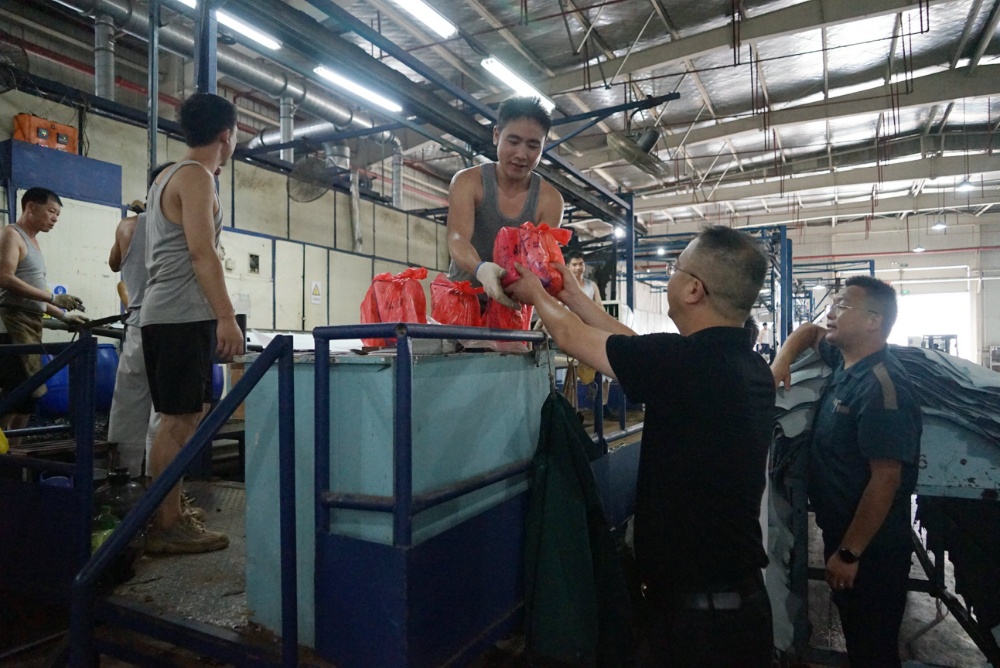 入伏以來,集團(tuán)下屬企業(yè)紛紛做好車間防暑降溫工作,盡量將一線車間的溫度降到最低。各企業(yè)開足所有通風(fēng)換氣、空調(diào)冷風(fēng)設(shè)備,發(fā)放霍香正氣水、飲料、姜茶等防暑必需品,每天還堅(jiān)持在高溫崗位(工區(qū))放置大量冰塊,在保障一線員工健康權(quán)益的同時(shí),力求做到降溫不減產(chǎn)。