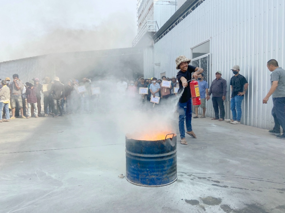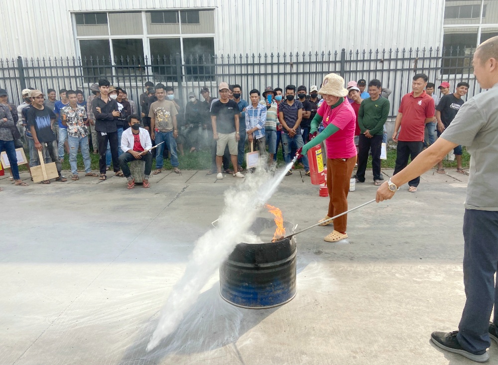 恒森公司柬埔寨廠區(qū)現(xiàn)有員工450人,這次培訓(xùn)分上、下午兩場(chǎng)進(jìn)行,著重宣傳和強(qiáng)調(diào)消防安全和道路交通安全的重要性和必要性,并就消防器材使用進(jìn)行了現(xiàn)場(chǎng)講解與演練。
