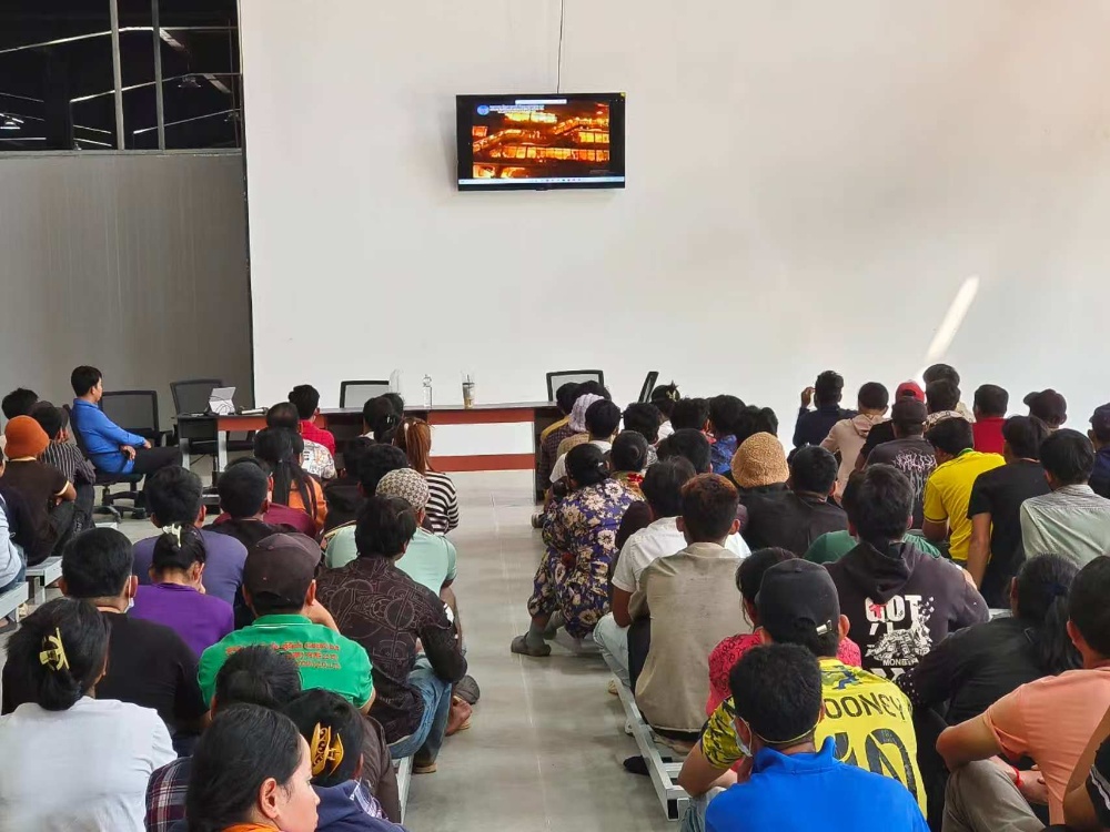 開工投產(chǎn),不忘安全。這次活動,公司領(lǐng)導高度重視,安排周密;全體工作人員各就各位,各司其職,認真負責。隨著警報響起,各車間中方管理人員、柬籍班組長立即有序組織員工通過疏散逃生通道撤離到“緊急集合點”,及時清點人數(shù),層層向上匯報。
