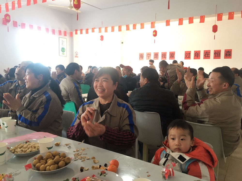 一片歡聲笑語中員工紛紛到來,有序簽到入場,明亮的餐廳,公司管理層早已布置,準(zhǔn)備好了整齊干凈的桌椅,掛起大紅燈籠,拉起了曖心的字語,備了瓜子、花生、糖果等各種小食。待大家入座后,首先公司負(fù)責(zé)人李林虎表達(dá)了對到來的留廠員工的感謝。隨后一個有趣的互動小游戲正式拉開了茶話會的序幕,輕松歡快的氛圍中,李總帶大家回顧了2020年公司的經(jīng)歷,分享了所取得的成績,并希望大家在新一年的工作中共同努力把恒森打造成充滿溫暖、互助友愛的大家庭。員工們邊吃邊聊邊表演著自己的拿手節(jié)目,相互拉著家常和探討著新的一年中要怎樣為公司的發(fā)展貢獻(xiàn)自己的力量,現(xiàn)場氣氛熱火朝天。一首《相親相愛的一家人》唱出了所有在會人的心聲,公司李總還親自為員工送上了新春祝福、慰問品和曖心紅包。他們紛紛表示:海寧是我家,過年在恒森,雖距家千里但也能感受到了家的溫暖。此次活動在大家洋溢著幸福笑臉的大合影中拉上帷幕。