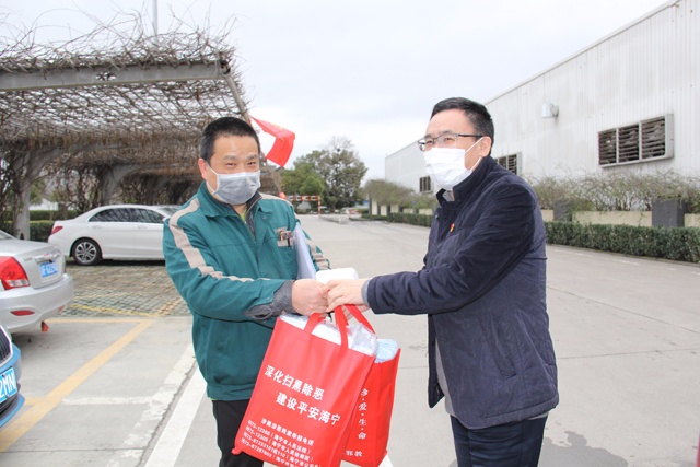當前,抗擊新冠肺炎疫情正處于關鍵時刻,各家企業(yè)陸續(xù)迎來復工復產。2月15日,斜橋鎮(zhèn)黨委書記洪國清和黨委委員、副鎮(zhèn)長潘曉國專程到我集團股份二區(qū)工廠慰問調研,了解企業(yè)的開復工情況和碰到的一些問題,送上了1000只醫(yī)用口罩和2把測溫儀。