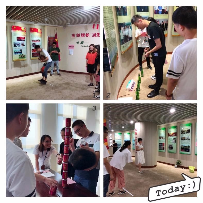 企鵝漫步其實(shí)是要求游戲者腋下夾兩個(gè)球,雙腿間再夾一個(gè)球,越過(guò)障礙走一個(gè)來(lái)回???,我們小陸同學(xué)像不像一只企鵝。易拉罐積木是一正一反依次往上疊,果然高手在民間,瞧,我們葛經(jīng)理竟疊起了8個(gè),直叫人拍手叫好。其他項(xiàng)目也是一片熱鬧景象,現(xiàn)場(chǎng)一片歡聲笑語(yǔ)。