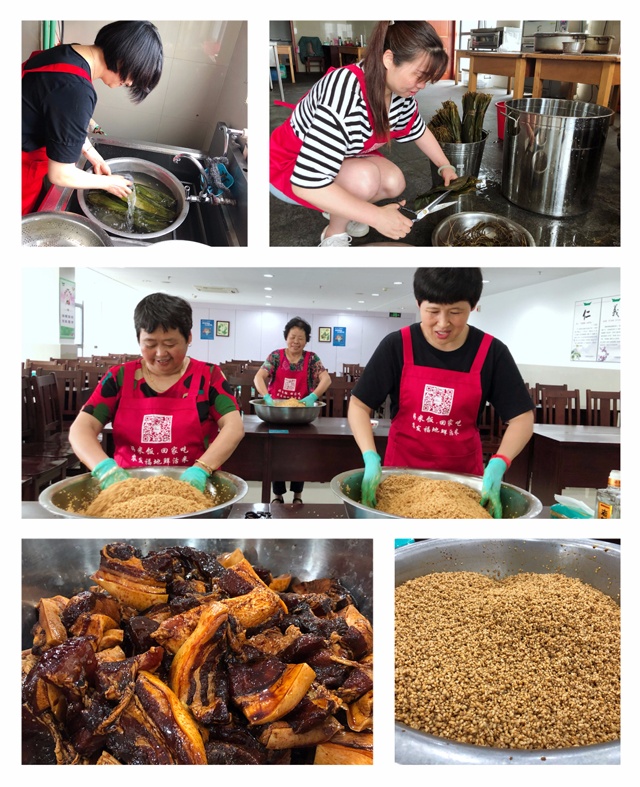 上午8點(diǎn),包粽子能手們?cè)缭鐏?lái)到了23樓,洗粽葉,泡糯米、腌配料,每一項(xiàng)工作都在有條不紊地進(jìn)行中。