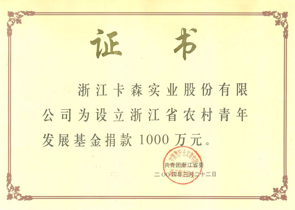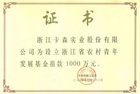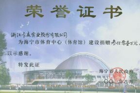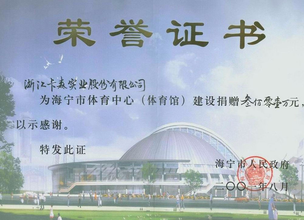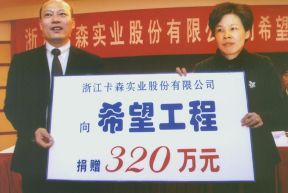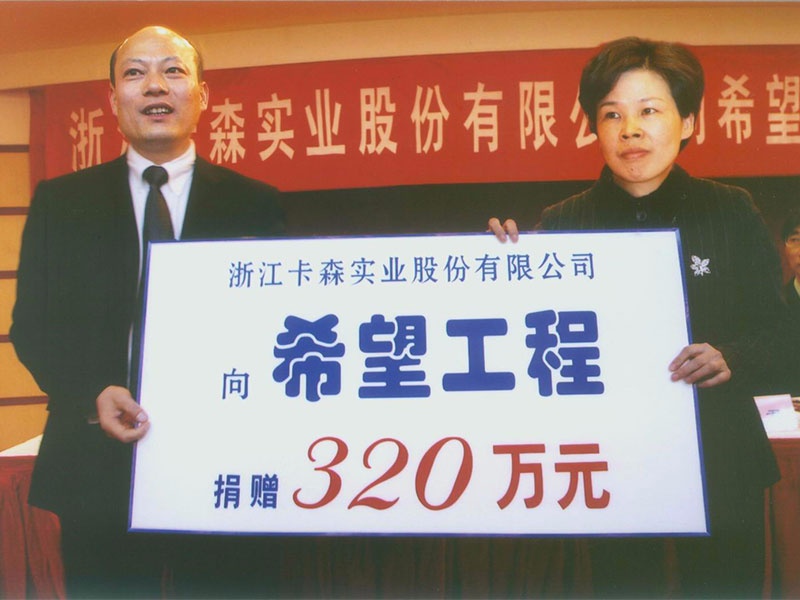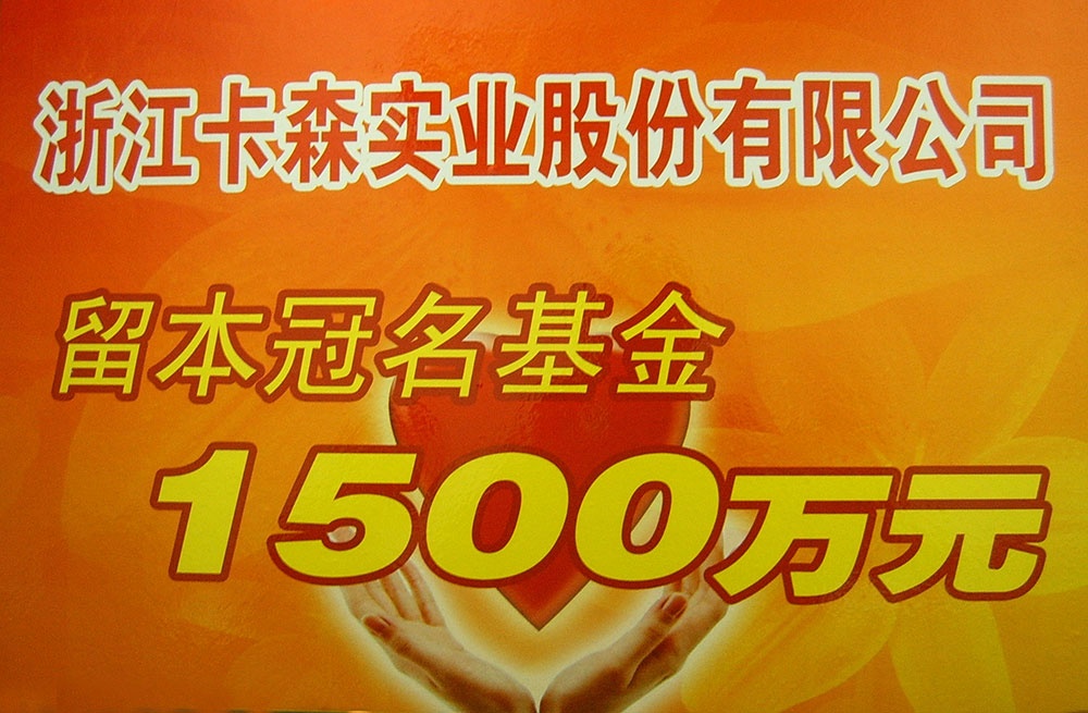 ▲ 2007年,海寧市創(chuàng)建慈善基金,集團設(shè)立卡森留本冠名基金1500萬元,至今累計捐贈545萬元,用于助困、助學(xué)、助教、助殘;