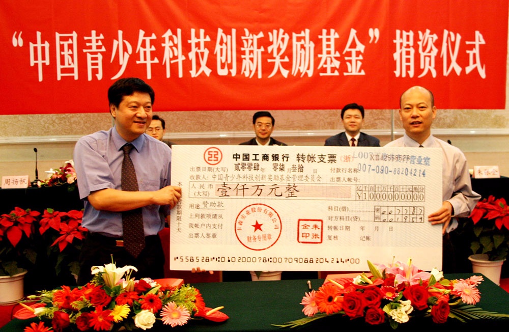 ▲ 2004年,向根據(jù)鄧小平同志遺愿設(shè)立的“中國青少年科技創(chuàng)新獎勵基金”捐贈1000萬元;
